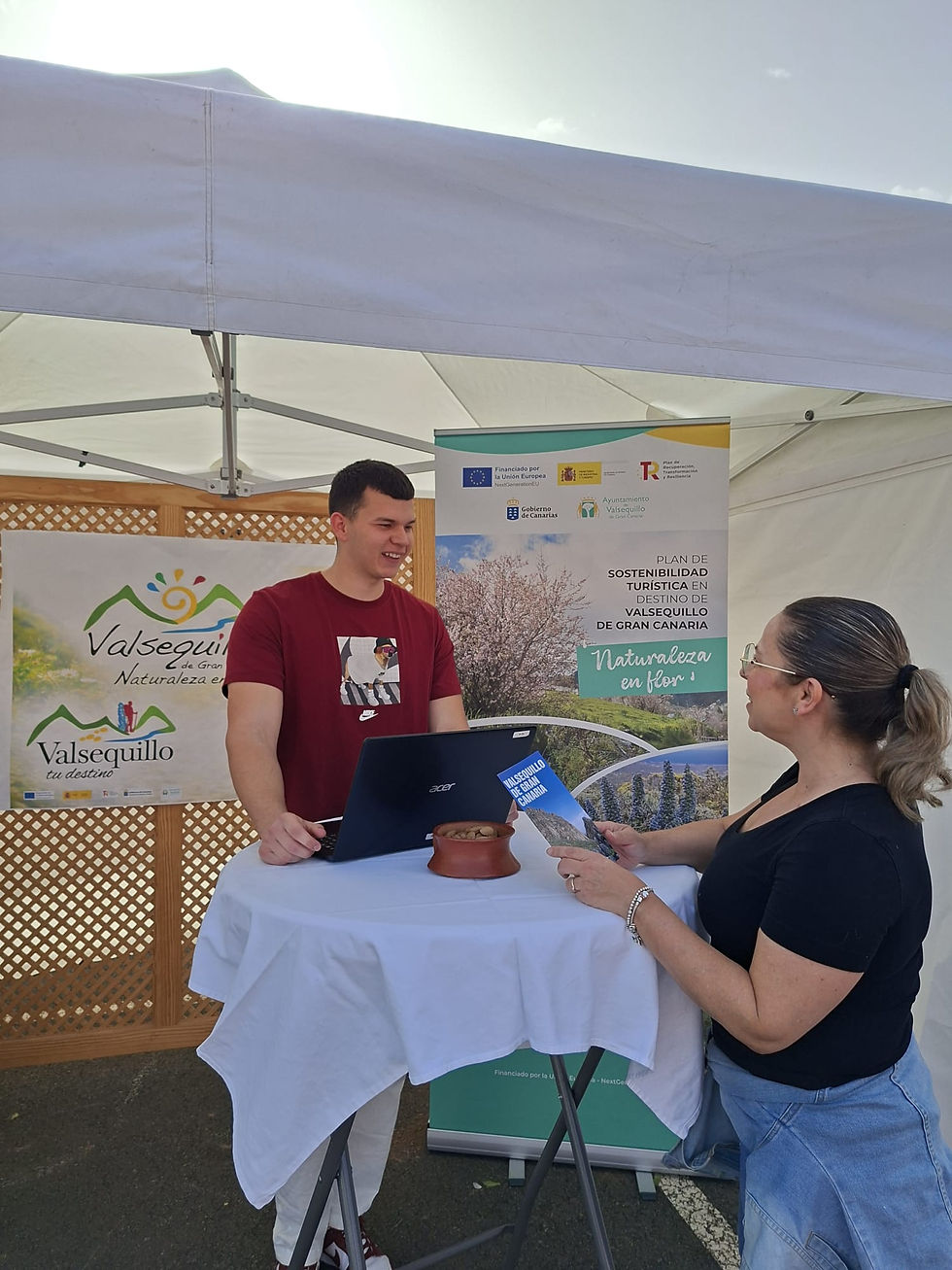 Había incluso un puesto dedicado a proporcionar accesibilidad e información a la ciudadanía sobre el Plan de Sostenibilidad Turística en Destino y de las actividades llevadas a cabo por el Ayuntamiento de Valsequillo en virtud de este, ejemplo de alguna de estas actividades, es el pasado Foro de Emprendedores que sucedió el 9 de abril de este año.