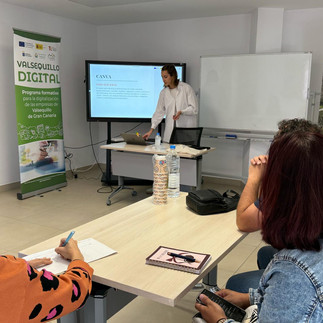 Durante la sesión, celebrada en la Casa de la Cultura de Valsequillo, las personas participantes tuvieron la oportunidad de aprender de manera práctica el manejo de Canva, una de las herramientas de diseño gráfico más utilizadas en la actualidad. La formación abordó aspectos clave como la creación de contenido para redes sociales, la personalización de plantillas y el uso de Canva para potenciar la identidad visual de empresas y marcas personales.